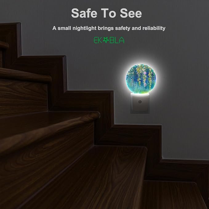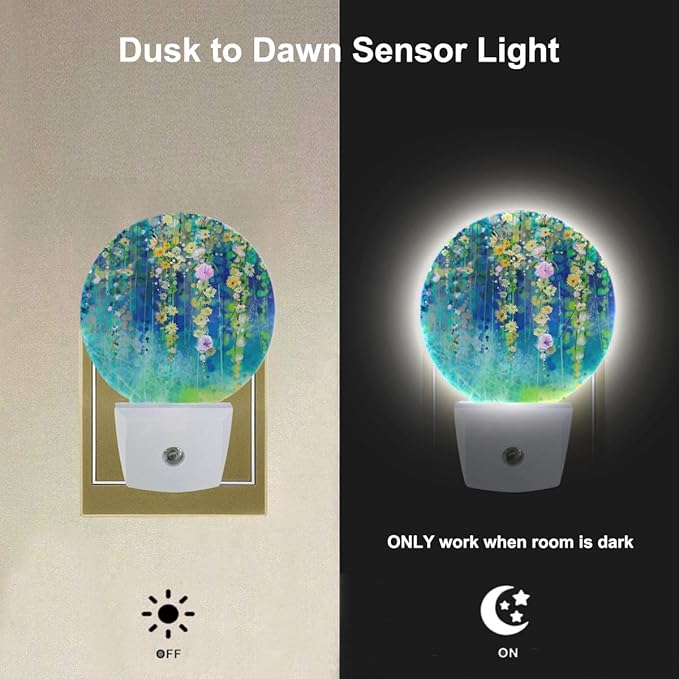 EKOBLA Ivy Flowers LED Night Light Spring Summer Green Floral Ivy Plant Wisteria Blossoms Dusk to Dawn Plug-in Nightlights Auto Sensor for Home Indoor Bathroom Hallway Kitchen