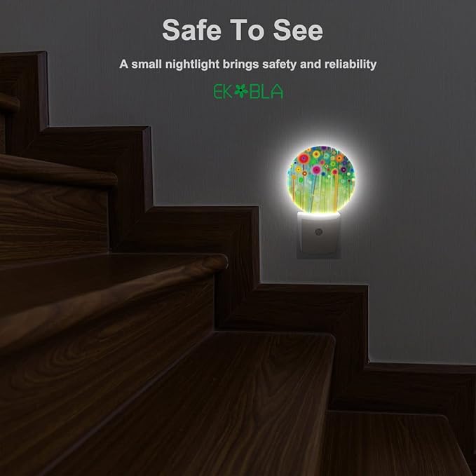 EKOBLA Green Floral LED Night Light Watercolor Wildflowers Spring Summer Green Flowers Dusk to Dawn Plug-in Nightlights Auto Sensor for Home Indoor Bathroom Hallway Kitchen