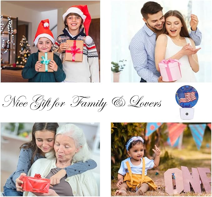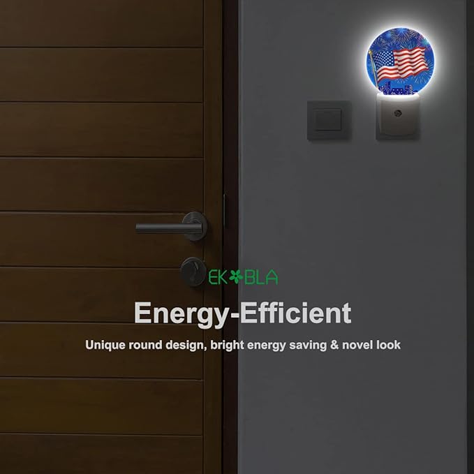 EKOBLA 4th of July Night Light American Flag Fireworks Patriotic Spirit Night Lights Plug into Wall Independence Day Plug-in Nightlights Auto on/Off Led Lamp for Men Women Girls Boys