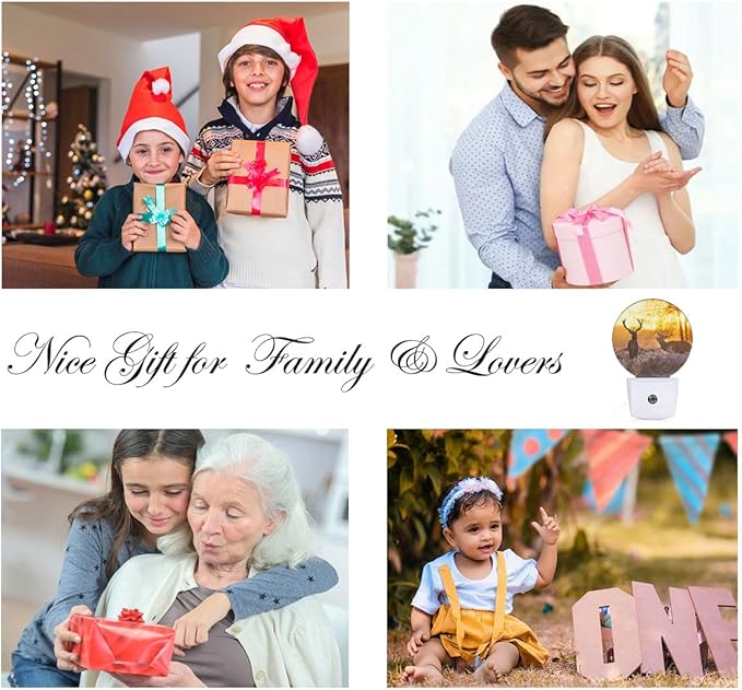 EKOBLA Deer Night Lights Plug into Wall Deer Elk Animals River Creek Autumn Woods Night Light with Dusk to Dawn Sensor LED Lamp for Men Women Boys Girls