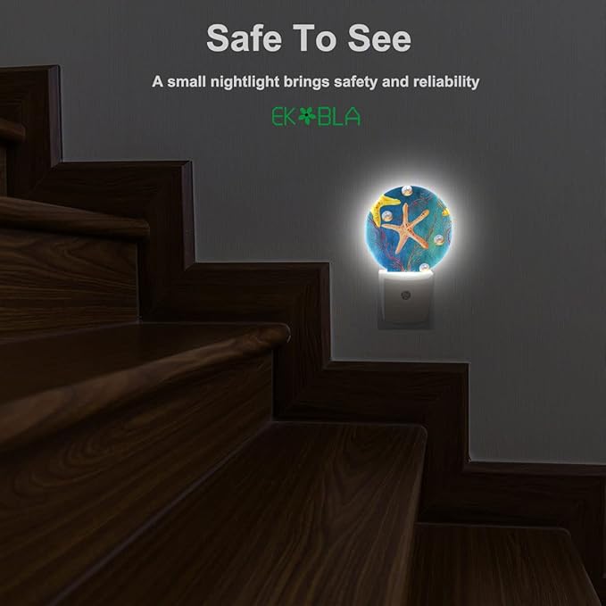EKOBLA Starfish Night Lights Plug into Wall Ocean Sea Coral Fish Pearl Reed Seashell Plug-in Nightlights Home Auto Sensor LED Dusk to Dawn Light for Bedroom Bathroom Kitchen Corridor