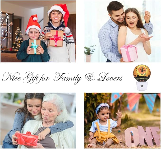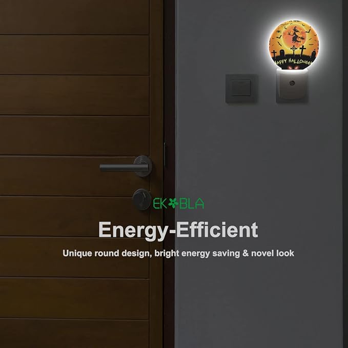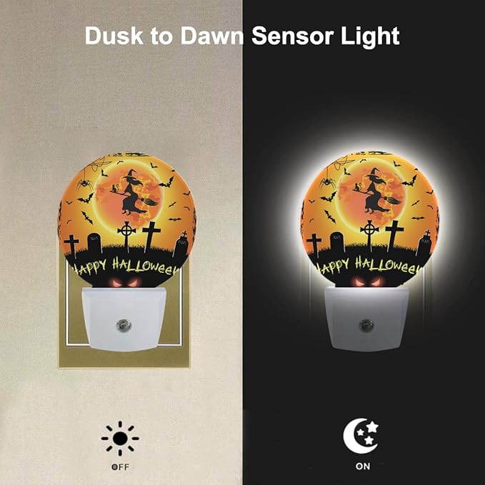 EKOBLA Halloween Night Lights Plug into Wall Scary Graveyard Flying Witch Bat Night Light for Boys Girls Men Women Happy Halloween Decorations