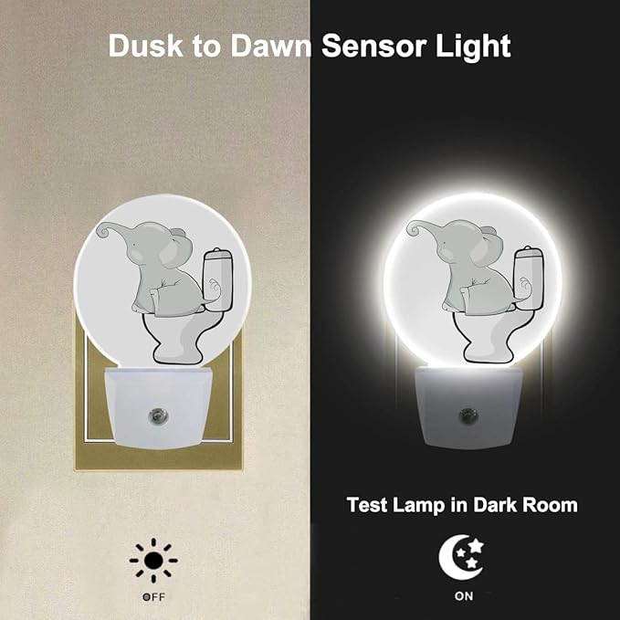 EKOBLA Cute Elephant Night Light African Safari Animal Elephant Sitting on Toilet Night Lights Plug into Wall for Girls Boys Bedroom Bathroom Led Decorative Nightlight Home Decor