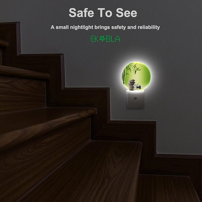 EKOBLA Meditation Night Light Bamboo Zen Stones Oriental Spa Peaceful Night Lights Plug into Wall Auto on/Off LED Round Lamp for Men Women Home Living Room Bathroom