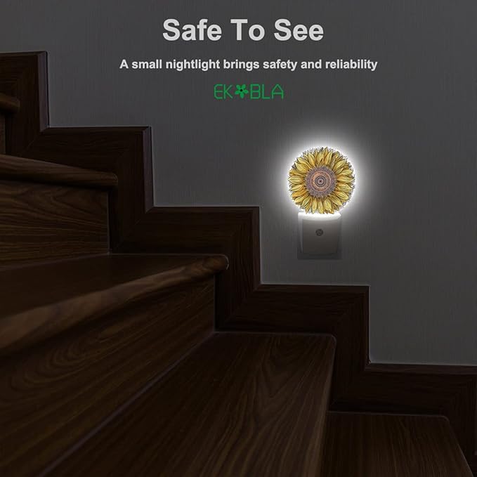 EKOBLA Sunflower Night Lights Plug into Wall Boho Yellow Flower Plug-in Nightlights, Gifts for Women Mom Grandma, Dusk to Dawn Sensor LED Round Nightlight Home Decor