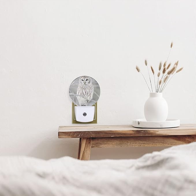 EKOBLA White Bird Plug-in Nightlights Cute Owl on Tree Branch Plug-in Nightlights Winter Early Spring Snow Scene Night Lights Plug into Wall Auto on/Off LED Light Home Decor