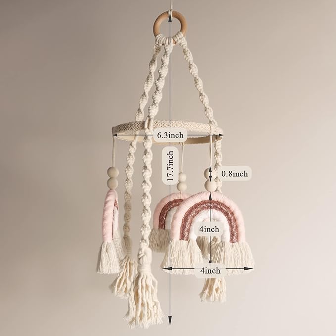 Baby Mobile for Crib - Rainbow Baby Mobile - Crib Mobile for Girls - Boho Crib Mobile - Boho Nursery Decor - Mobile for Bassinet, Pack N Play - Pink