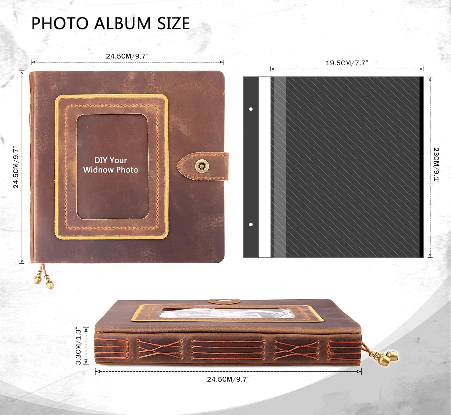 - This handmade leather photo album is entirely handmade from high-quality distressed genuine leather for durability and a premium feel. Over times the leather will develop a unique patina. Meanwhile, manual stitching with waxed thread complements to the retro vibe and provides enhanced durability.