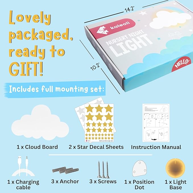 - Gentle Glow for Peaceful Nights: Our cloud light creates a soft, warm glow that helps your baby drift into peaceful sleep without harsh brightness. Ideal as a nursery light for late-night feedings or soothing routines — turning bedtime into calm, cozy comfort.