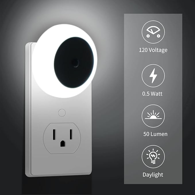 - 【Nightlights With light Sensors】Plug in night light with sensor, automatic night light Keep the room bright all day, good option night light for kids, bathroom night lights plug into wall adult night light, wall night light and travel night light, sensor night light.