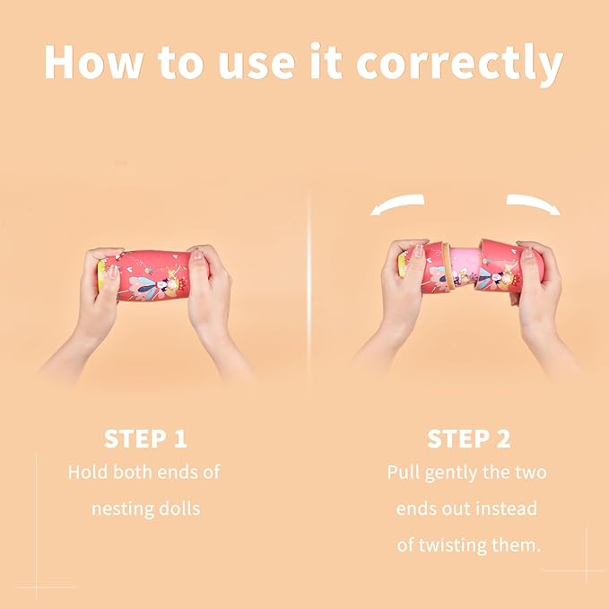 - Notes: Remember to close the nesting dolls after finishing playing, because they might shrink and will not match each other