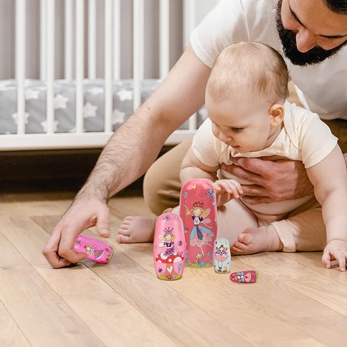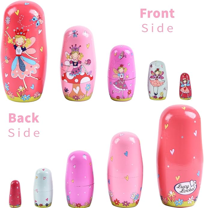 Nesting Dolls, 5Pcs 6" Tall Russian Nesting Dolls, Handmade Matryoshka for Kids, Wooden Stacking Toys for Christmas Home Wedding Party Decorations (Fairy)