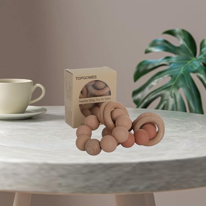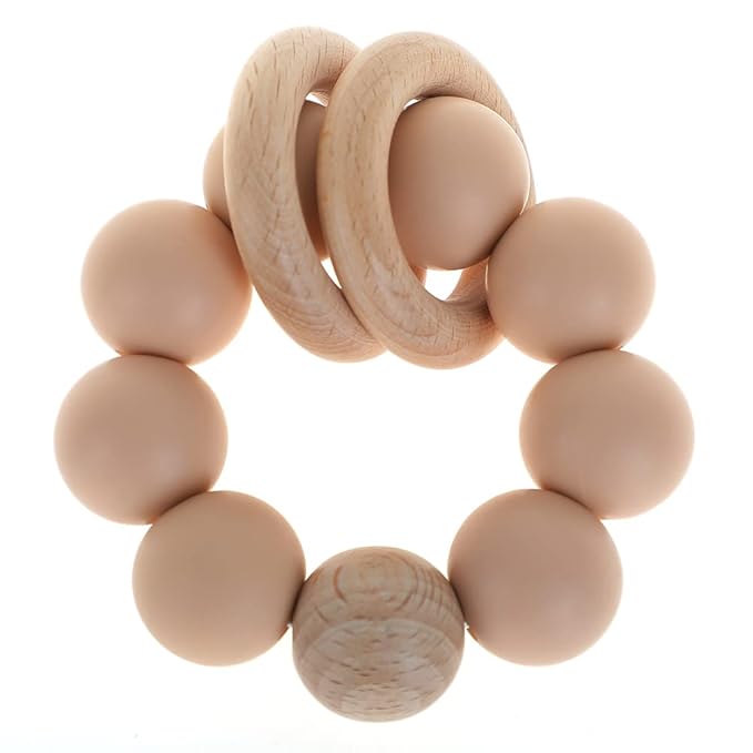Silicone Baby Teether, Food Grade Silicone & Beech Baby Teething Toy, BPA Free (Apricot)