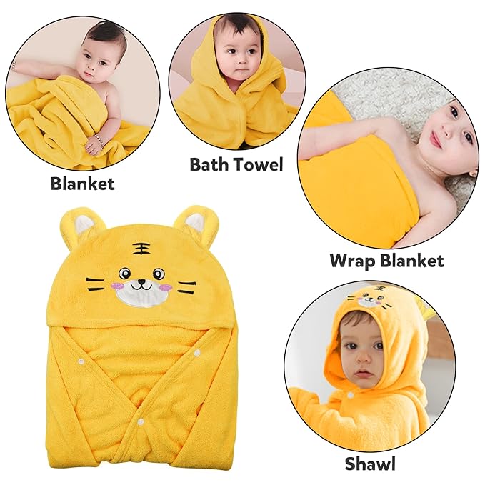 ROMASA Toddler Hooded Bath Towel Ultra Soft Towel Highly Absorbent Bathrobe Blanket for Boys Girls- 27.5" x 55" (Yellow-Tiger)
