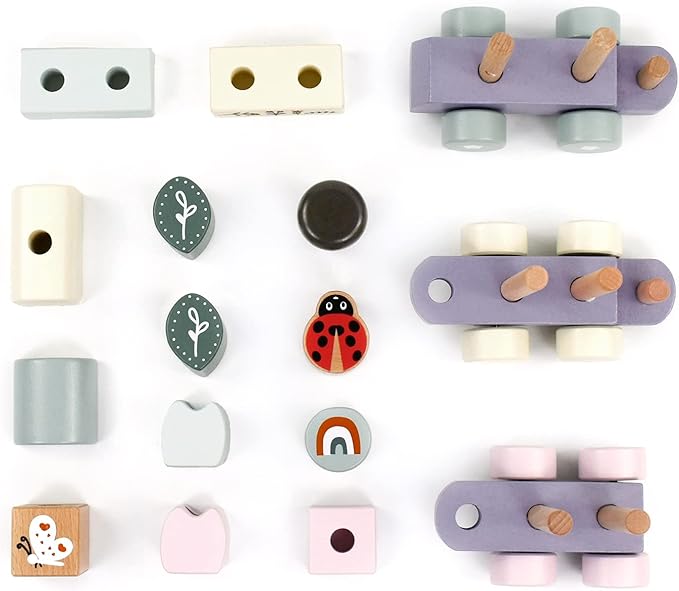 - VERSATILE 16-PIECE STACKING TRAIN SET – Three magnetic cars and 13 pastel blocks invite endless building, sorting, and hauling, boosting fine-motor skills and spatial reasoning