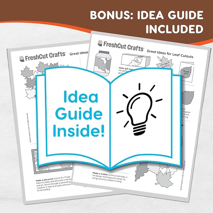 - LEAFY CREATIVITY: Create a world of autumn beauty with our set of 120 punch-out Fall leaf cutouts! Each leaf is crafted from high-quality card stock, offering a variety of shades in bright yellow, orange, and red. But that's not all - included inside is an IDEA GUIDE, brimming with 12 imaginative ways to utilize our paper leaf shapes. Whether you're embellishing seasonal displays, or creating stunning crafts these versatile cutouts are sure to inspire your creativity!