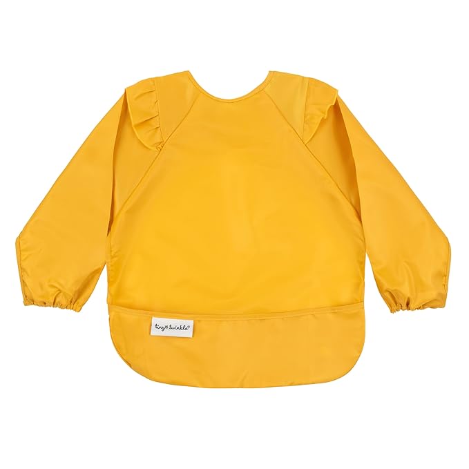 Tiny Twinkle Mess Proof Baby Bib,Waterproof Smock Baby Bib for Eating,Machine Washable Long Sleeve Bib,Baby Led Weaning,Toddler Bib,BLW Supplies(Dandelion, Large 2-4 Years)