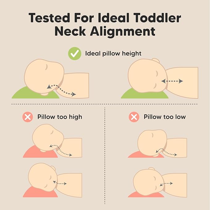- Ergonomically Designed – The KeaBabies Toddler Pillow offers ergonomic support for healthy spinal alignment and all-night comfort. Note: Vacuum-sealed and may appear flat. Simply massage or cold wash and tumble dry low to restore its fluffiness after opening from package.