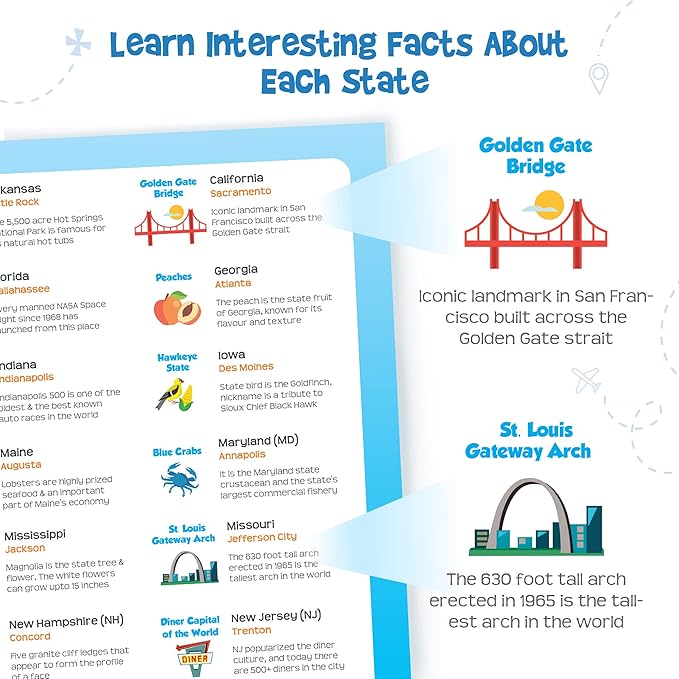 - Educational Toys For 4+ Year Old: A unique, fun and exciting USA Map Puzzle to help children learn about the States of USA, their Neighbors, Capitals & some interesting fun facts