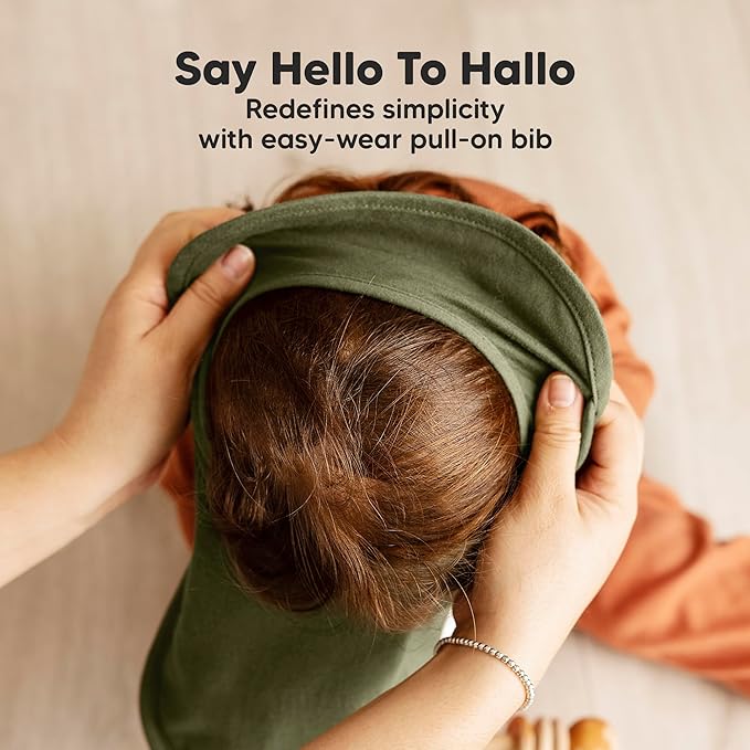 - For Active Infants, Toddlers - The Hallo Baby Teething Bib features a pullover lap shoulder design—no snaps, easy to put on. Just slip it over the baby's head like a t-shirt, and you’re all set. It stays on all day, even for the most active toddler.