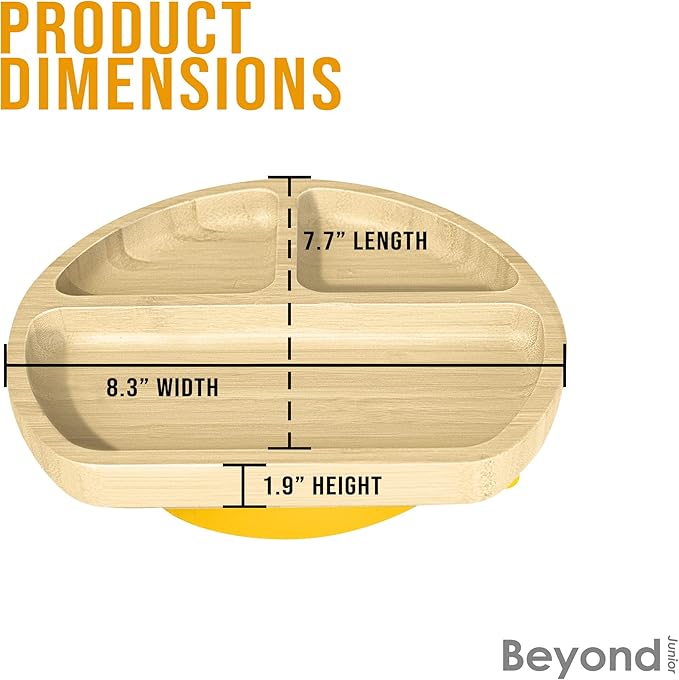 - EASILY FITS IN ANY HIGHCHAIR: Ergonomically designed for children at least four months of age, our baby bamboo plate has a convenient size that fits all brands of high chair trays. It is intended to encourage toddler self-feeding without (so much of) the mess.