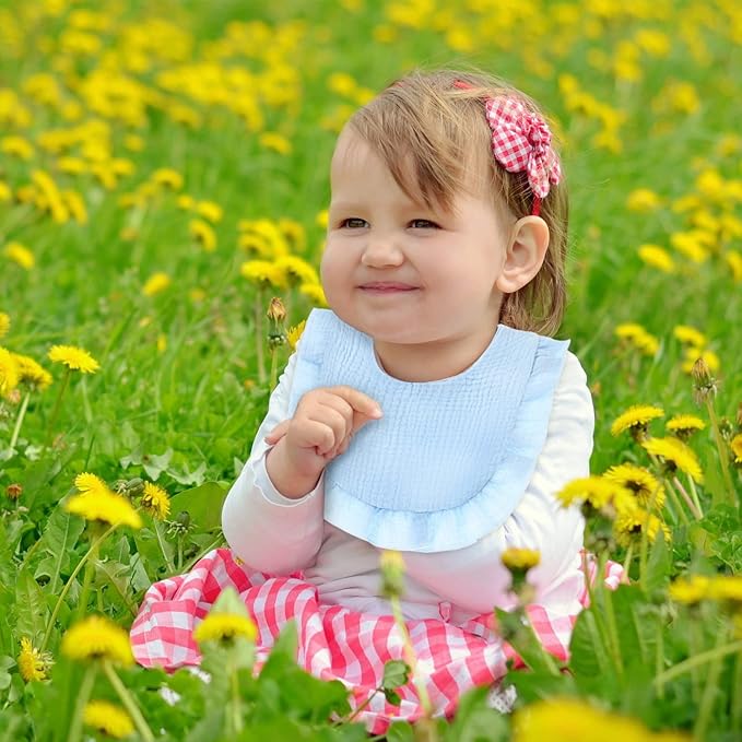 - Excellent absorbent and breathable bibs:Made of pure Muslin cotton, these bibs are made with 4 layers of Muslin gauze for super absorbency and breathability. It can keep your baby's clothes dry at all times . The absorbency can instantly absorb baby's drool, and the breathability allows the bib to dry quickly. Reduce the occurrence of baby's skin-related problems. Take care of baby's sensitive skin.