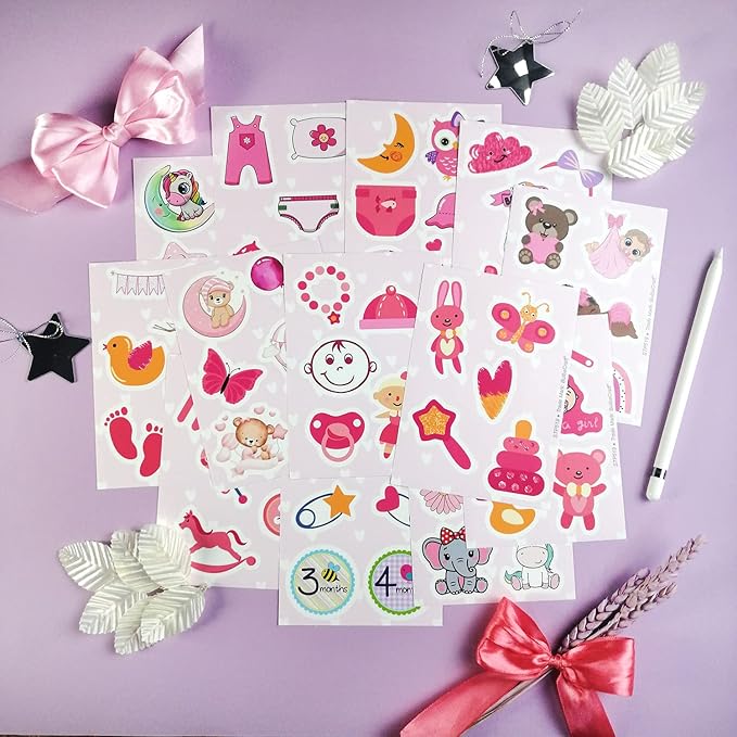 - PARTY DECOR - Make any newborn celebration cute and bright. Use sweet pink stickers for baby girl birthday decorations, welcome baby girl party decorations, baby girl shower decorations, baby gender reveal decoration. This sticker pack is a great gift for parents of newborn. Also use them as baby girl party favors.