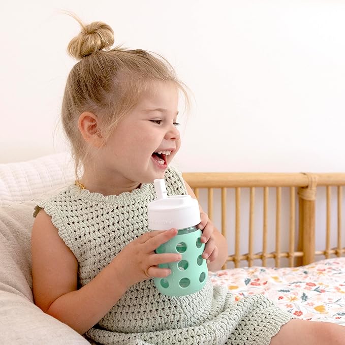 Lifefactory 8-Ounce Wide Neck Glass Baby Bottle with Protective Silicone Sleeve and Pivot Straw Cap, Stone Gray (LG2241WCG4)