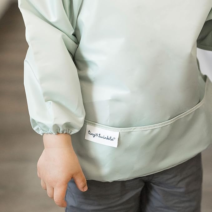 Tiny Twinkle Long Sleeve Bib for Babies & Toddlers – Waterproof Smock Bib for Eating – Machine Washable & Mess-Proof, Baby Feeding Essential & Shower Must-Have(Sage Green, 2-4Y)