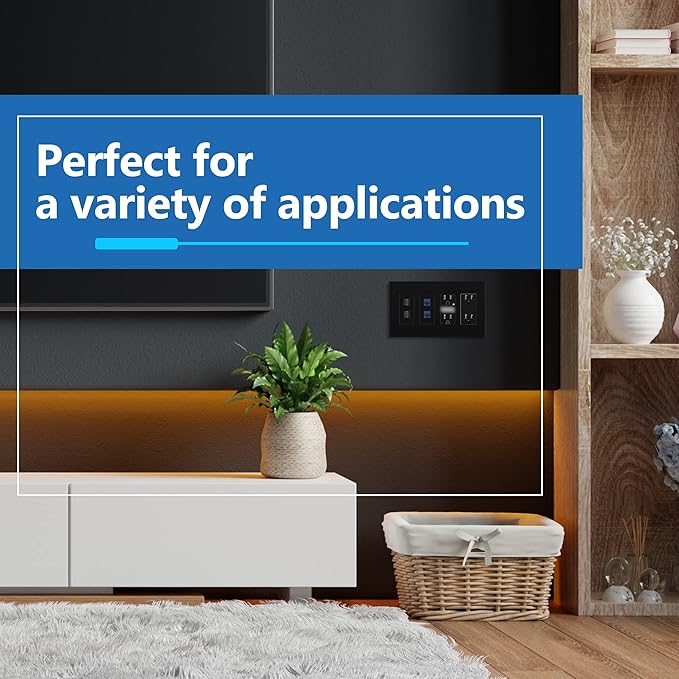 - Easy replacement of any decorator wall plate of the same configuration; mid-size dimensions: 4.88" height x 8.58" length