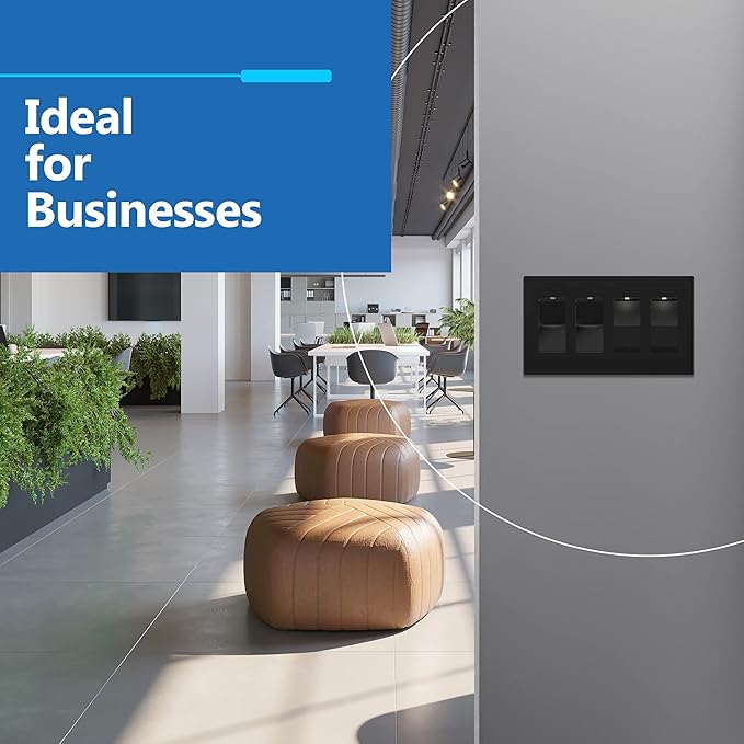 LIDER Matte Finish Quadruple Decorator Switch Cover, Screwless Wall Plate, Mid-Size 4-Gang 4.88" x 8.58", Polycarbonate Thermoplastic, UL Listed, LSWP-34M-BK, Black