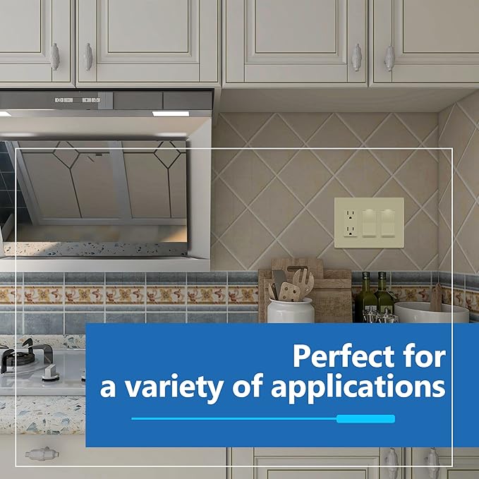 LIDER Matte Finish Decorator Switch Cover, Screwless Wall Plate, Mid-Size 3-Gang 4.88" x 6.77", Unbreakable Polycarbonate Thermoplastic, UL Listed, LSWP-33M-I, Ivory