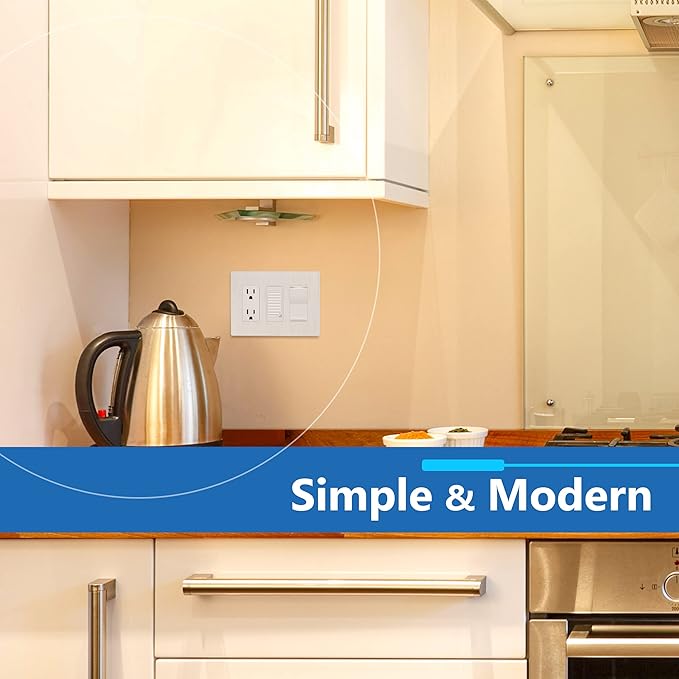 - Easy replacement of any decorator wall plate of the same configuration; mid-size dimensions: 4.88" height x 4.92" length