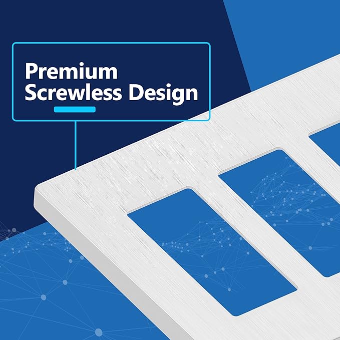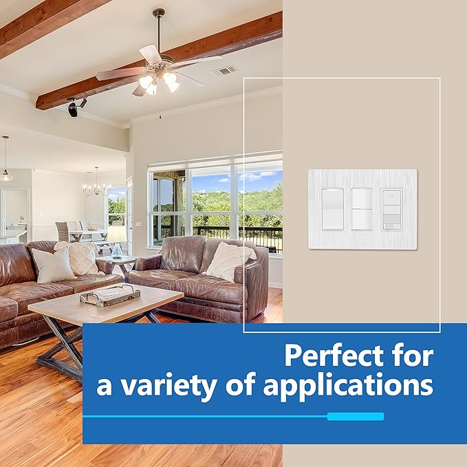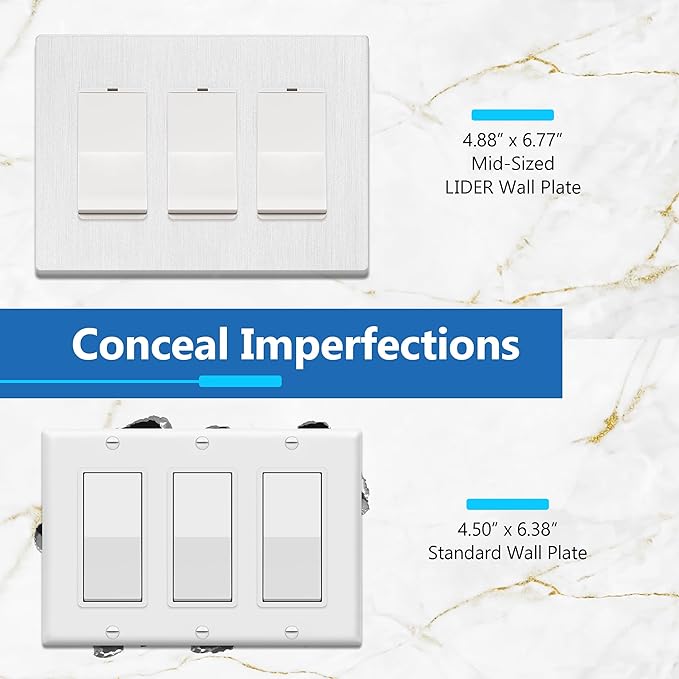 LIDER Brushed Finish Decorator Switch Cover, Screwless Wall Plate, Mid-Size 3-Gang 4.88" x 6.77", Unbreakable Polycarbonate Thermoplastic, UL Listed, LSWP-33M-BW, Brushed White