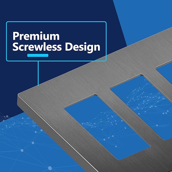- Brushed Space Gray color; screwless cover for added child safety; flammability Ul94; V2 rating; 1-year warranty; UL-listed
