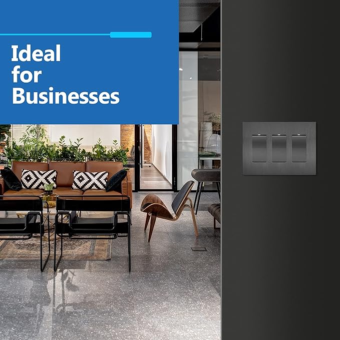 LIDER Brushed Finish Decorator Switch Cover, Screwless Wall Plate, Mid-Size 3-Gang 4.88" x 6.77", Unbreakable Polycarbonate Thermoplastic, UL Listed, LSWP-33M-BSG, Brushed Space Gray