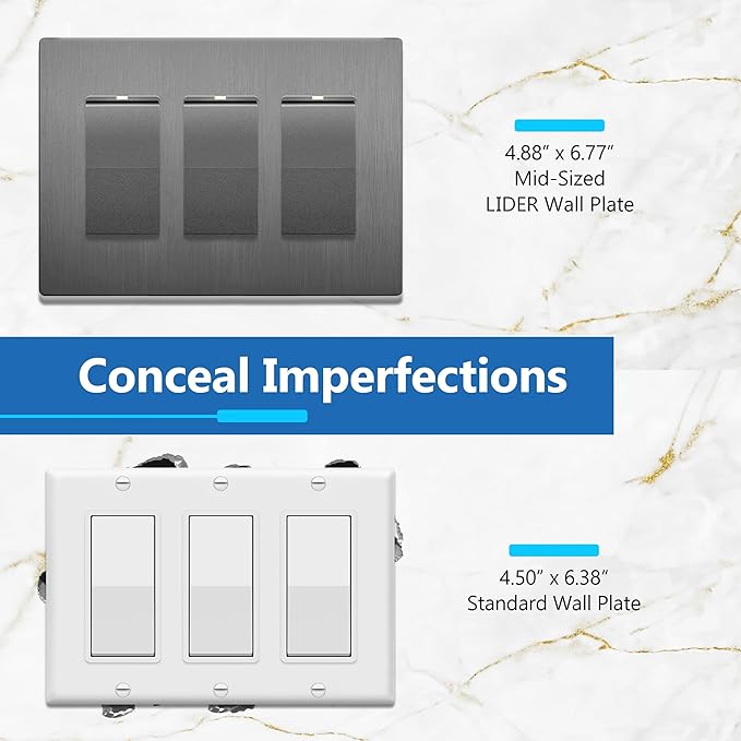 - LIDER brushed finish wall plates are compatible with decorator-style devices from a variety of brands, but LIDER products should be used to ensure the best fit and color match; products from other brands may not perfectly match in fit or color