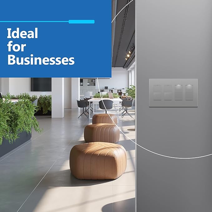 LIDER Matte Finish Decorator Switch Cover, Screwless Wall Plate, Mid-Size 4-Gang 4.88" x 8.58", Unbreakable Polycarbonate Thermoplastic, UL Listed, LSWP-34M-GY, Gray