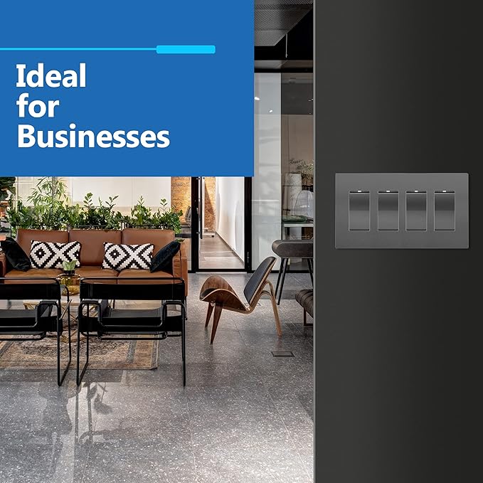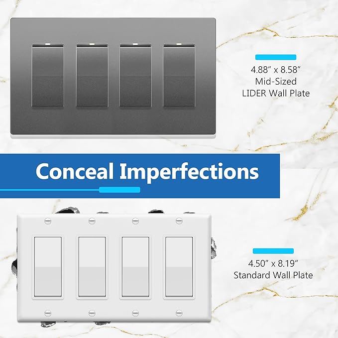 LIDER Matte Finish Decorator Switch Cover, Screwless Wall Plate, Mid-Size 4-Gang 4.88" x 8.58", Unbreakable Polycarbonate Thermoplastic, UL Listed, LSWP-34M-SG, Space Gray