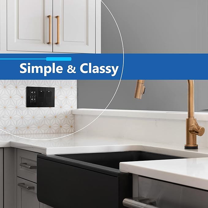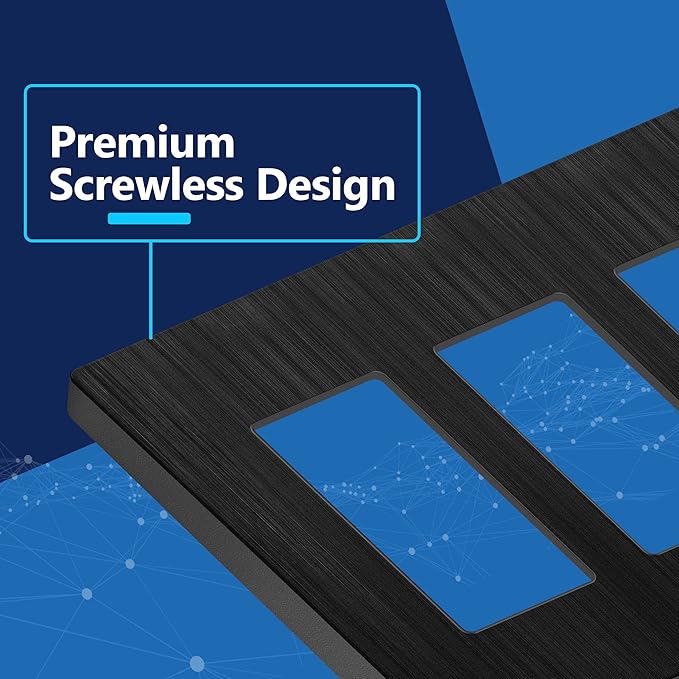 - Brushed Black color; screwless cover for added child safety; flammability Ul94; V2 rating; 1-year warranty; UL-listed