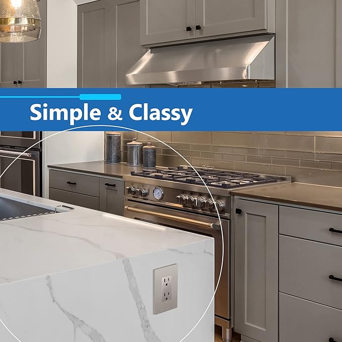 - Nickel Color ;screwless cover for added child safety; flammability Ul94; V2 rating; 1-year warranty; UL-listed