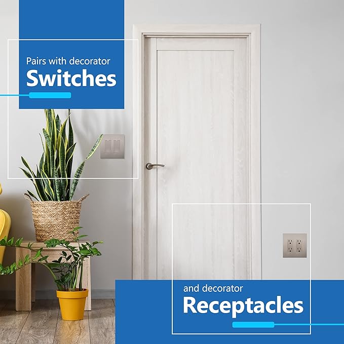 - Easy replacement of any decorator wall plate of the same configuration; mid-size dimensions: 4.88" height x 4.92" length