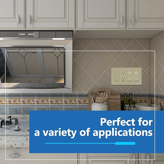 - Easy replacement of any decorator wall plate of the same configuration; mid-size dimensions: 4.88" height x 8.58" length