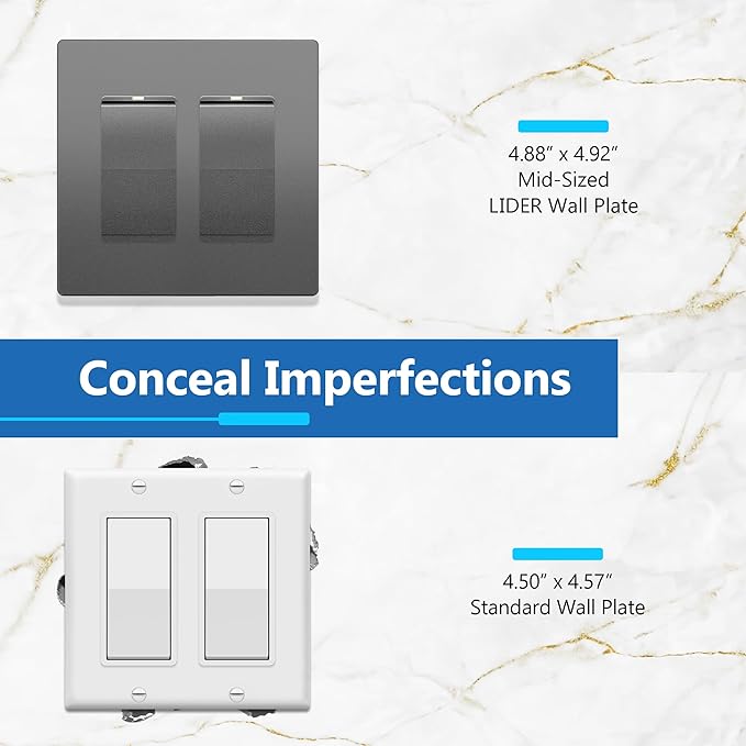 LIDER Matte Finish Decorator Switch Cover, Screwless Wall Plate, Mid-Size 2-Gang 4.88" x 4.92", Unbreakable Polycarbonate Thermoplastic, UL Listed, LSWP-32M-SG, Space Gray