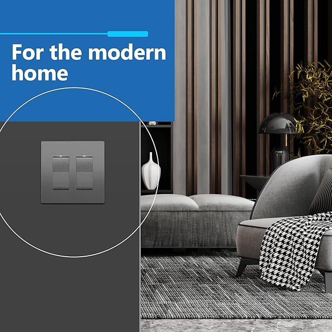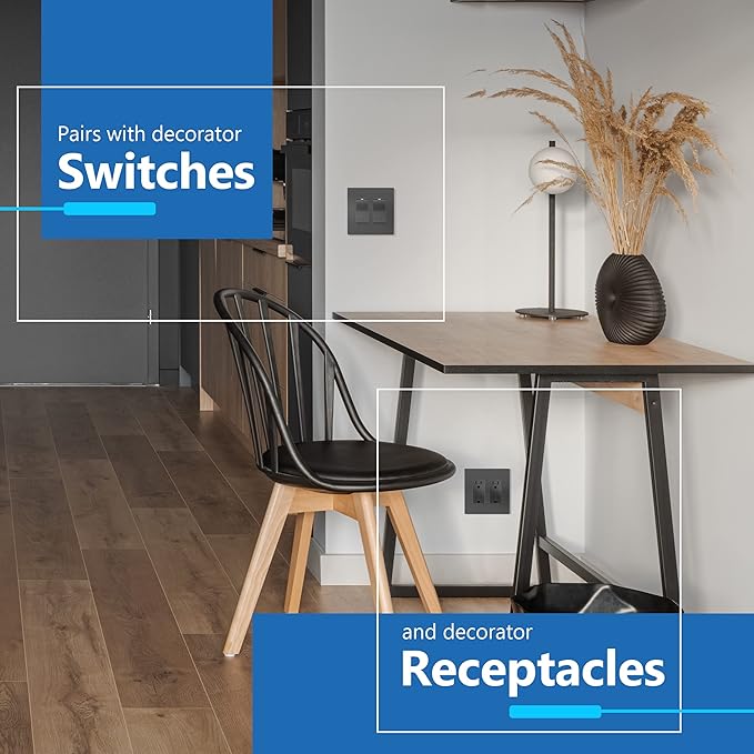 - Space Gray Color; screwless cover for added child safety; flammability Ul94; V2 rating; 1-year warranty; UL-listed