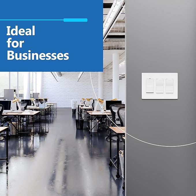 LIDER Matte Finish Triple Decorator Switch Cover, Screwless Wall Plate, Mid-Size 3-Gang 4.88" x 6.77", Polycarbonate Thermoplastic, UL Listed, LSWP-33M-W, White