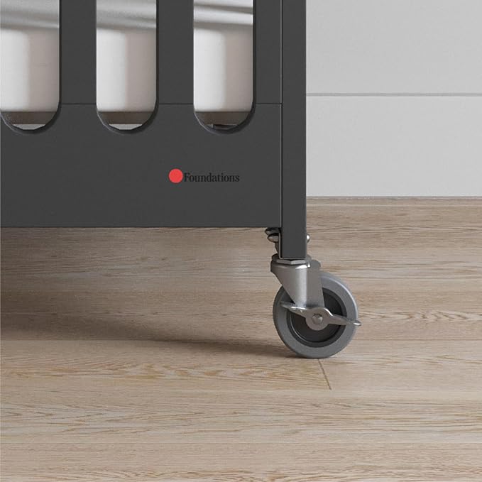 - Effortless Storage & Mobility - With four commercial-grade casters (two locking), itβs easy to move yet secure for child safety. Easy fold system fits compact in storage so you can maximize your space. Unfolded: 40β L x 25β W x 35β H; folded: 40β L x 13.5β W x 35β H.