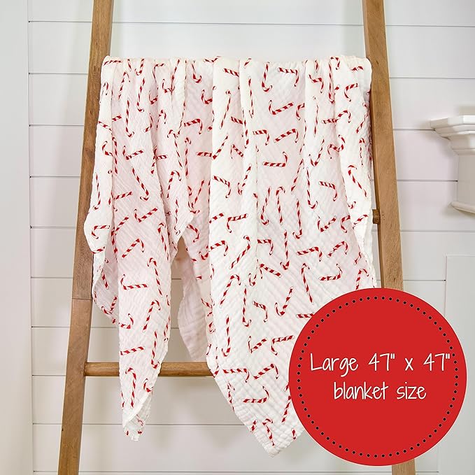 - CANDY CANE CHRISTMAS SWADDLE - With a festive candy cane print, this blanket is a delightful addition to the nursery or a perfect prop for a newborn Christmas photoshoot. Parents will adore it as a seasonal gift or a warm welcome for their little holiday bundle