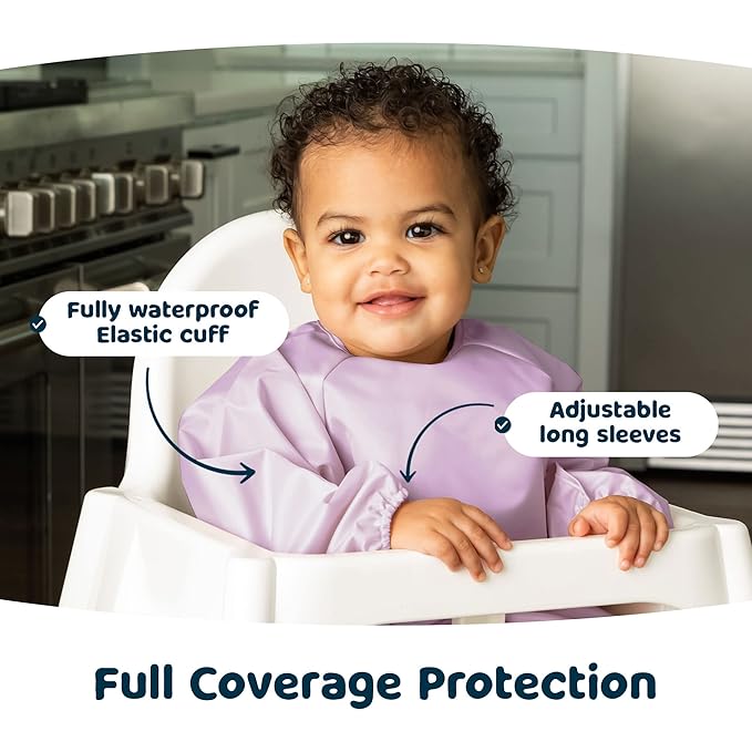 - Mess-Proof Mealtime: Our long sleeve bibs make every meal easy and worry-free for parents. Soft, waterproof fabric and gentle elastic cuffs provide full coverage to keep little ones clean and comfortable.