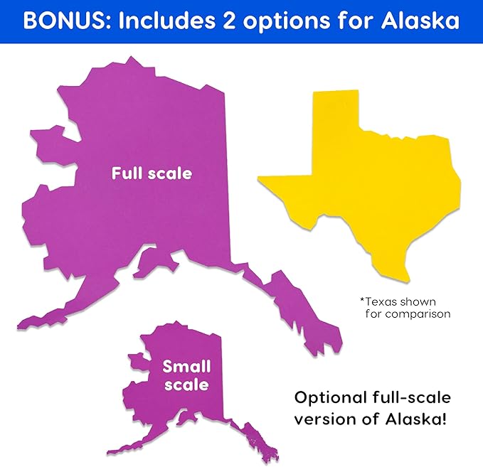 - EXPERIENCE SUPERIOR QUALITY: This pack includes 50 easy punch-out paper states plus a BONUS full-proportion version of Alaska on sturdy, high-quality cardstock in 4 bright colors, proudly made in the USA. Our products stand out from the rest: they are NOT printed, NOT made from flimsy construction paper, and NOT foam shapes. Instead, you get durable, premium cardstock shapes that are perfect for your creative projects, ensuring lasting quality and exceptional results.